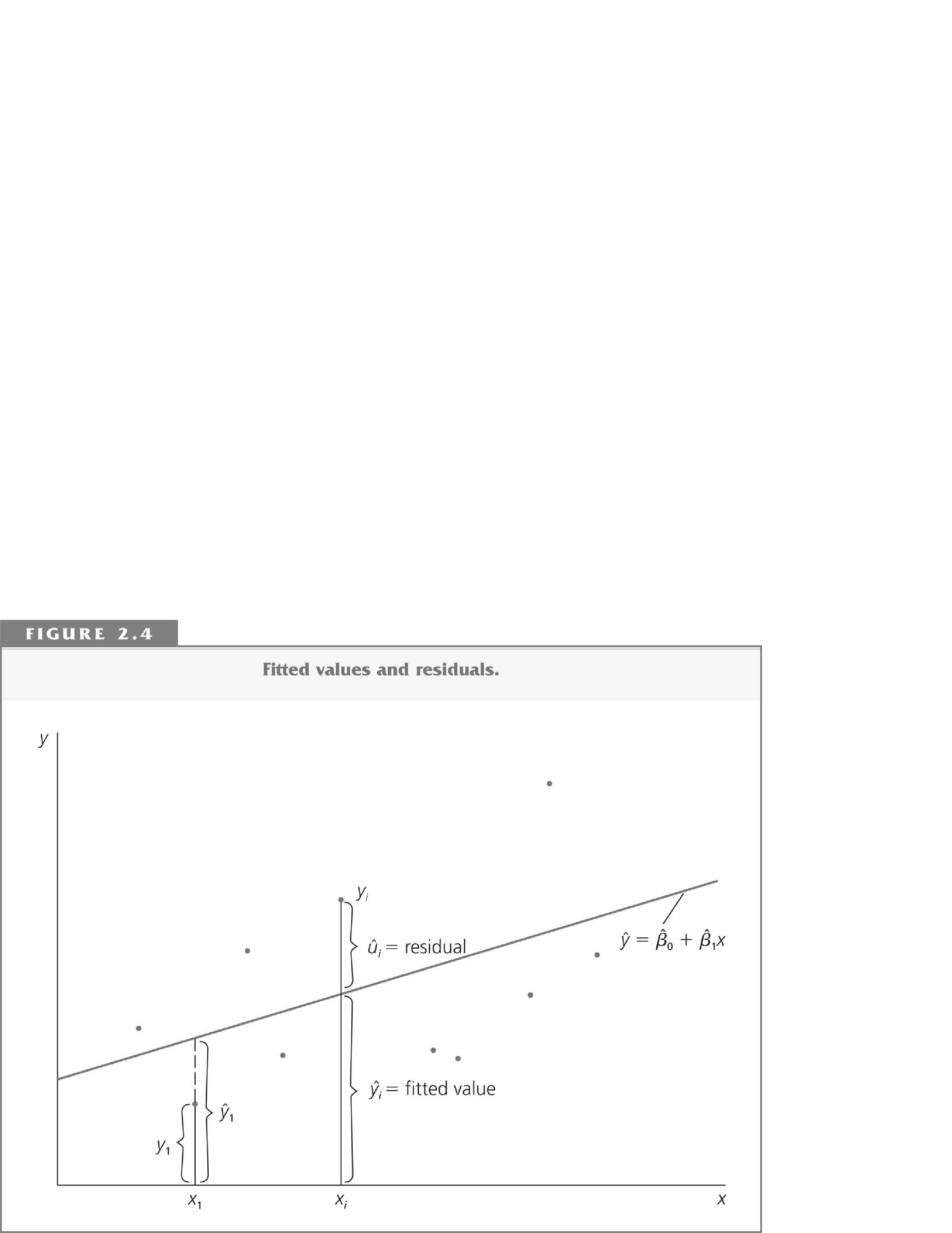 - Fitted values: \hat{Y}_{i} = \hat{\alpha} + \hat{\beta}X_{i}.